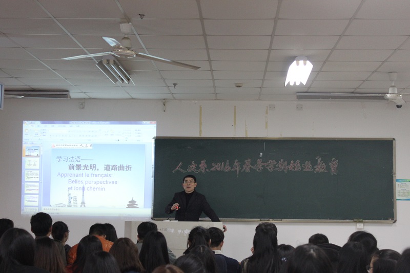2月28日,人文系2016春季学期始业教育在6304教室举行,人文系党总支副书记徐辉,法语专业主任朱浩然出席会议,人文系全体员工参加了会议,会议由徐副书记主持。