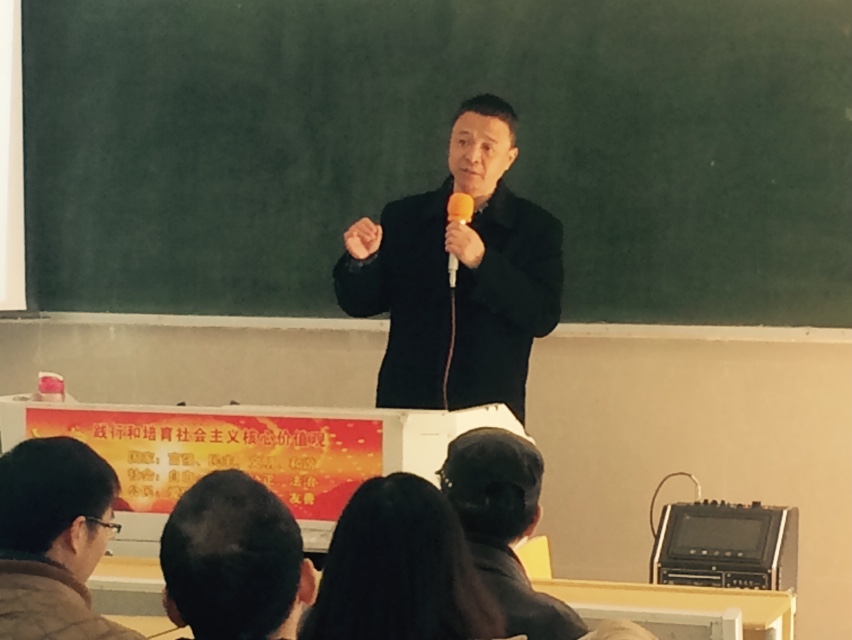 尹主任首先总结了人文系2015年各项工作:1、“三三制”法语专业教育培养模式初显成效,出国就业人数已近20余人;2、教学和思政工作稳步推进;3、以竞赛推进教学改革,在全国及省市中收获多个奖项;4、主持和推动全院职业生涯规划教育等。紧接着,部署2016年整体工作:1、继续坚持推动课堂教学改革;2、继续坚持创新创业教育;3、继续坚持规范教学形式行为;4、继续坚持协同发展。并对在即将到来的党建巡查和思政督查工作中做了具体要求。随后,提出四点思考:“一、是否存在纯理论教师?二、法语专业是否只是法语教研室的事情?三、教师参政议政的参与度有多少?四、教师是否规划个人职业发展?”最后,徐辉副书记在思想作风建设方面做了新的要求,并部署提前招生工作。