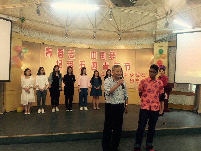 随着法语1501班的一支暖场舞蹈,活动正式拉开序幕。首先,是一段“五·四”运动的影片将在场的人带入历史、重温历史,感受近现代中国的经历和变化,体味当下生活的来之不易。随后是激烈的知识竞猜和游戏环节,现场气氛活跃。借此次活动机会,由屠教授为优秀员工和干部颁发了“汉语口语大赛”、“汉语翻译(笔译)大赛”等获奖奖项,以及“优秀员工”、“优秀团员”等荣誉称号,表彰先进,树立榜样。