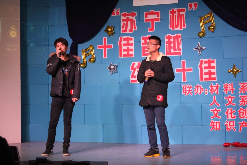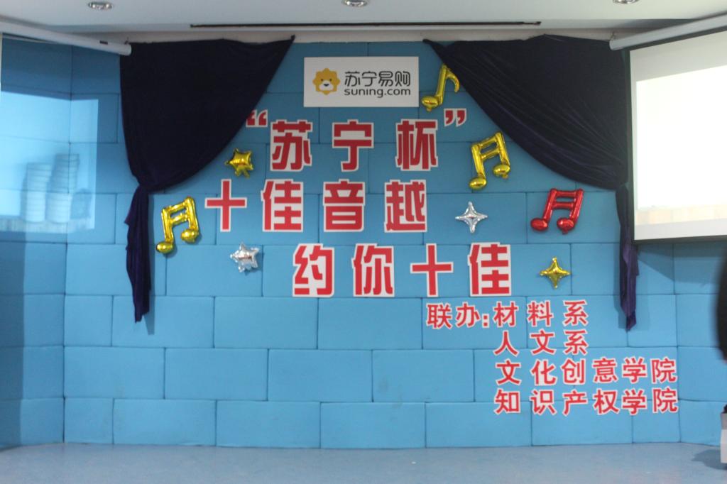 12月15日晚在阶梯教室举办了由人文系,材料系,文化创意公司,知识产权公司联办的"苏宁杯"十佳歌手大赛。