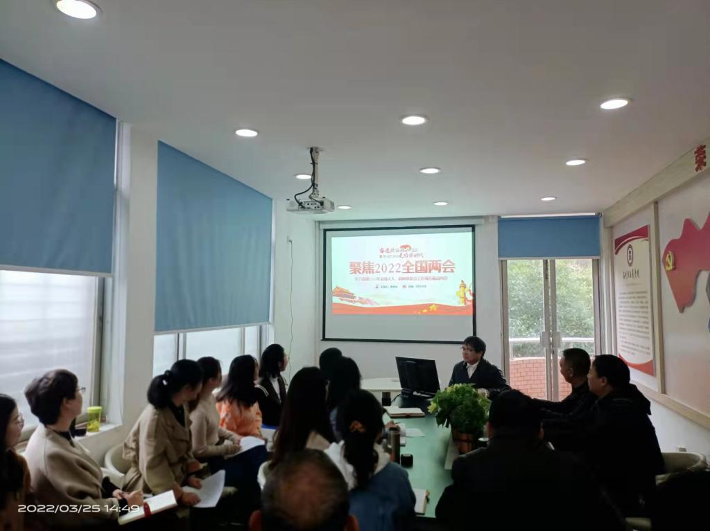 党建引领,层层学习提站位。党支部开展“学习贯彻2022年全国两会精神”主题党课活动,第一时间将“两会”精神纳入学习议程,采取理论中心组深学、理论宣讲助学,讨论交流研学等方式,组织党员教师开展集中学习活动。同时开展“两会”热点讨论,在相互交流中提高政治站位,促进深化理解、把思想和行动统一到习近平总书记重要指示和“两会”精神上来。