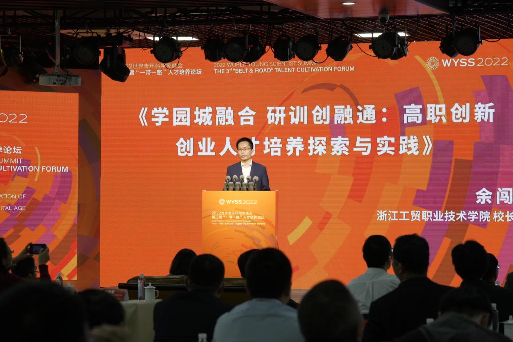 11月16日-17日,以“数字化时代智能制造领域人才培养方式变革与国际化”为主题的2022世界青年科学家峰会第三届“一带一路”人才培养论坛在温州永嘉召开,余闯董事长受邀做题为《学园城融合研训创融通:高职创新创业人才培养探索与实践》的主旨报告。