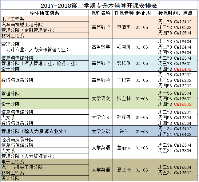 为满足专升本同学升学考试需求,根据公司整体教学安排,本学期专升本辅导安排通告如下: