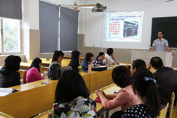 人文系总支教工支部书记程振设作党章发展历史沿革介绍