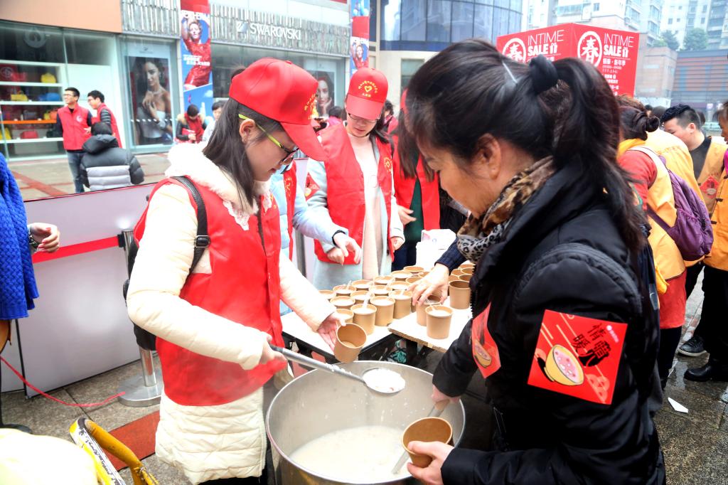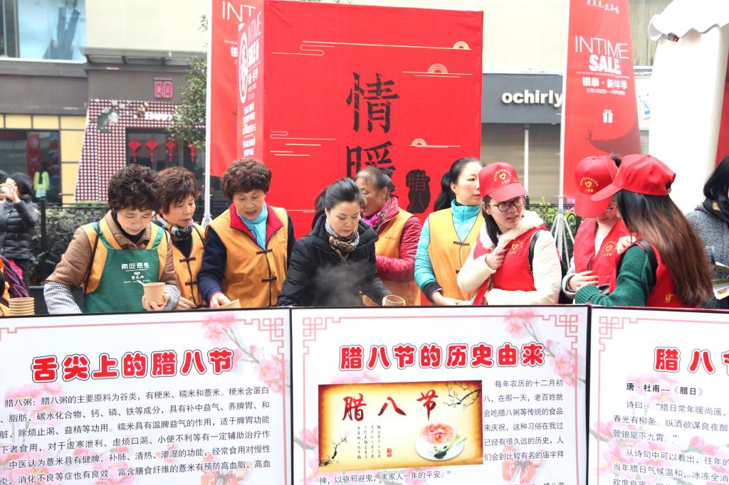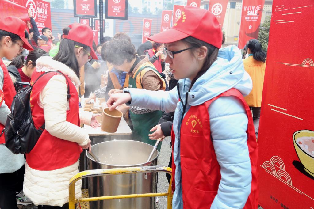 农历腊月初八是中国传统的“腊八节”,人文系应“新青年下乡”对口联系的温州鹿城区大南街道要求,紧急组织已经放假回家的人文系老员工义工队的6位队员在徐辉老师的带领下,当天早上在温州市区银泰广场与当地街道社区联合开展了“腊八暖冬送温暖”之腊八粥派送活动。早上8点前,队员们就在当地工作人员的指挥下,在现场为清晨辛勤工作的环卫工人及周边的晨练市民派发热气腾腾的腊八粥及维持现场秩序。队员们还在工作人员的带领下,将腊八粥依次送进了社区活动室、小区警卫室、周边商铺、居民家中,为行动不便或不能离开的老人们、保安门卫、商铺营业员等提供服务,受到市民们的好评。