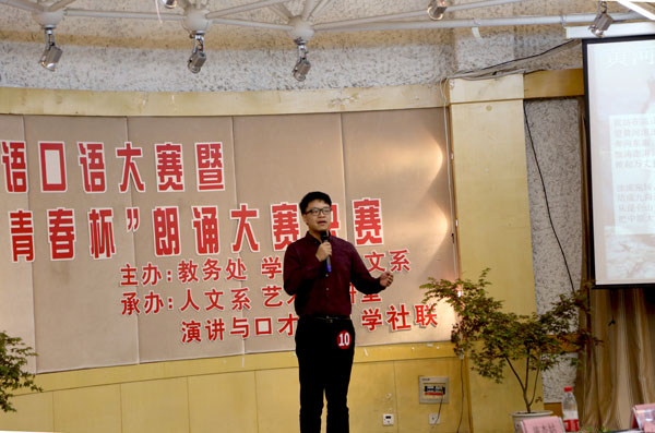 11名选手参加。经过紧张精彩的比赛过程,最终,经贸分院的袁璐瑶获得一等奖;信息分院的马浩博、汽机分院张涛获二等奖;轻工系杨萍萍、叶超、人文系赵亚慧分获三等奖;其余决赛选手获优秀奖;轻工系获优秀组织奖。