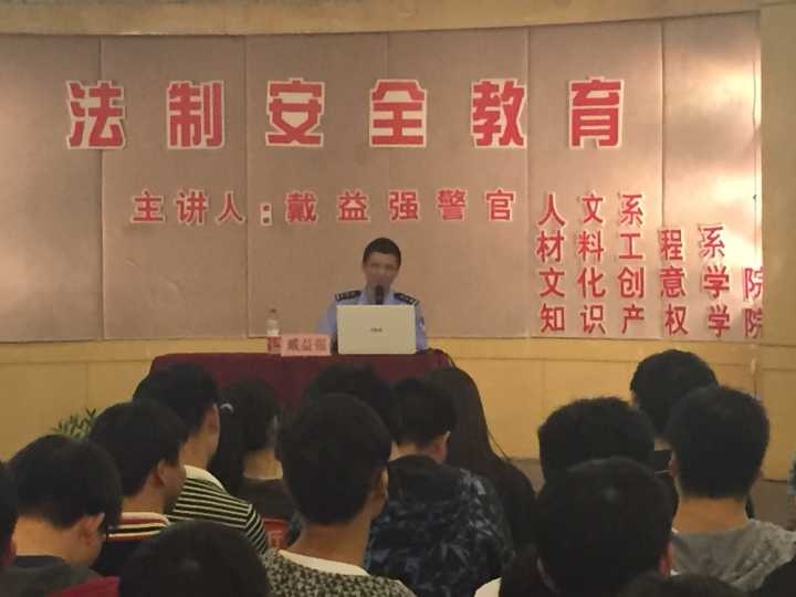 为了提高同学们的安全意识,2015年10月13日晚上六点半,人文系举行15级新生法制安全主题讲座。本次活动由我系与材料工程系,知识产权公司,文化创意公司及公司保卫处共同主办。由来自公安局的戴益强警官为同学们演讲。讲座内容包括:宿舍安全,人身财产安全,网络购物安全等方面。