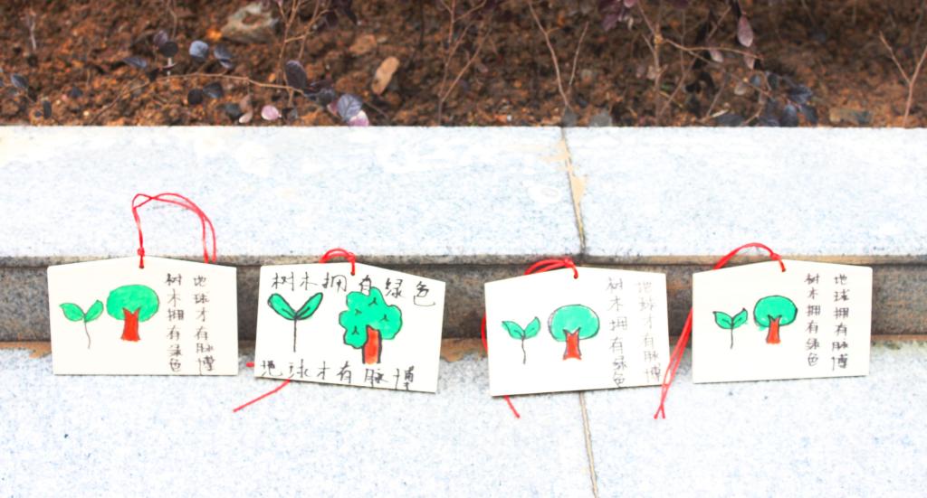 志愿者们准备好颜料工具,通过发挥自己的想象力,在事先准备好的木牌上创作,很快一个个生动的绿色宣传“小广告”就应运而生了。接着,队员们开始搜寻校园各个醒目的树枝,将木牌悬挂其上。在整个活动中,不时有路人经过,向志愿者们竖起了大拇指,为此次创意活动点赞。