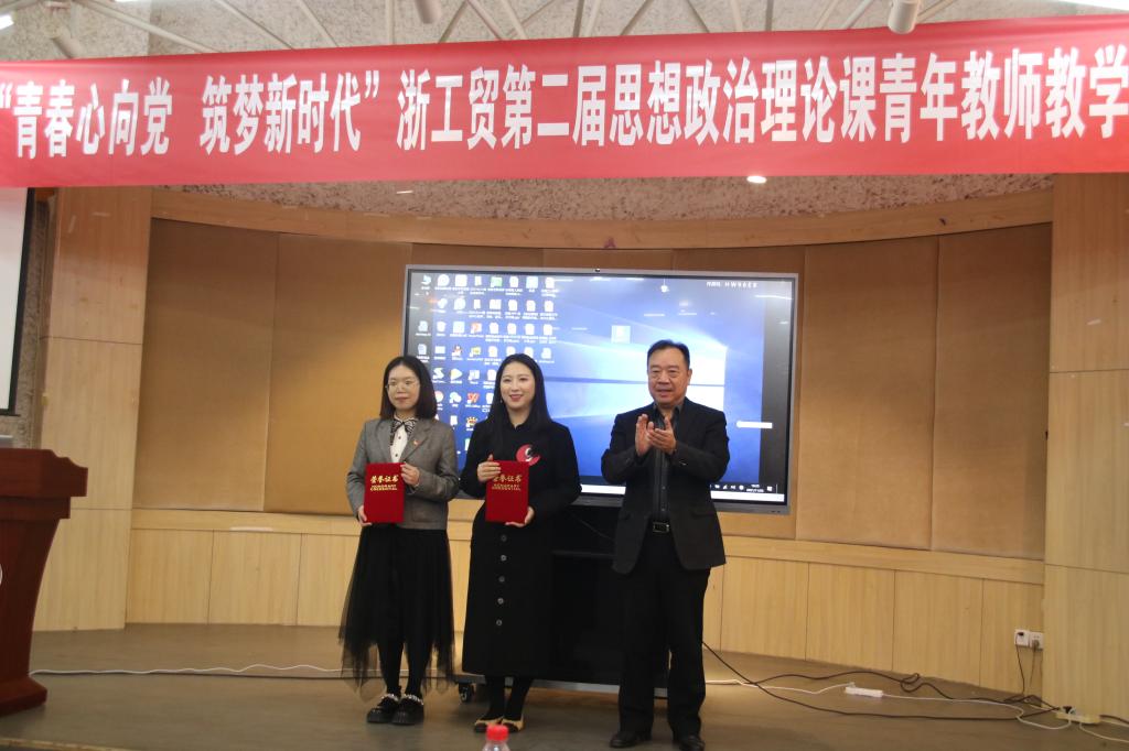 经过激烈角逐,青年教师李思思、陈伊琳荣获一等奖,青年教师郑严等教师分获二、三等奖。党委书记盖庆武为荣获一等奖的教师颁奖。