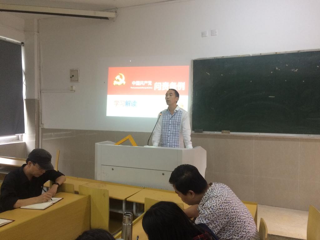 10月14日下午,人文系党总支在1301教室开展“两学一做”系列党课学习教育活动,总支全体教师党员参加了会议,会议由党总支副书记徐辉主持。