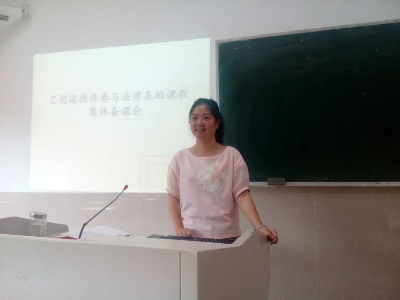 备课会上,朱余洁老师首先介绍了《思修》课的基本情况,主要围绕《思修》教材性质与内容、课程目标、课程内容设置以及考核要求向大家作了具体说明。她指出,当前形势下,思想政治理论课的教师队伍在思政课程向课程思政转变的过程中起着重要的作用,思政老师要积极承担责任,上好每一次课,把学习贯彻习总书记7.26讲话精神和即将召开的十九大精神宣传好贯彻好落实好,不断提升思想政治理论课的教学效果。
