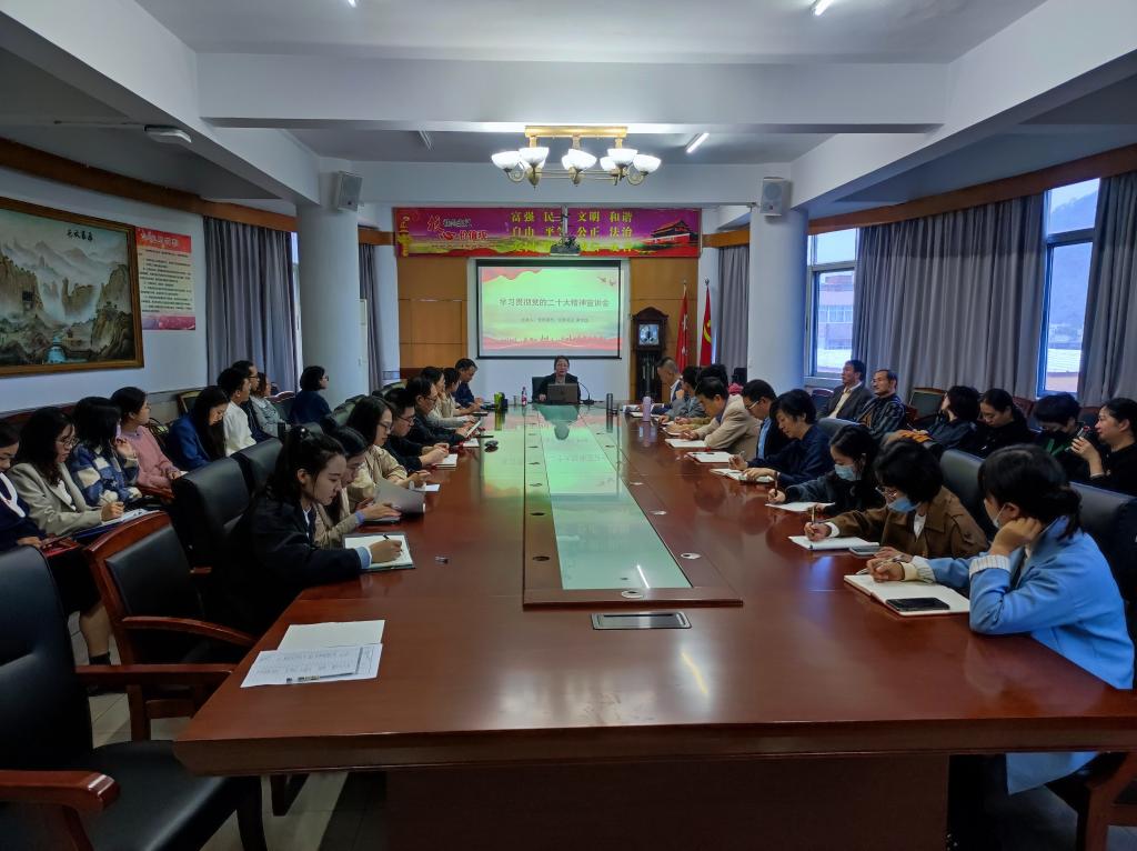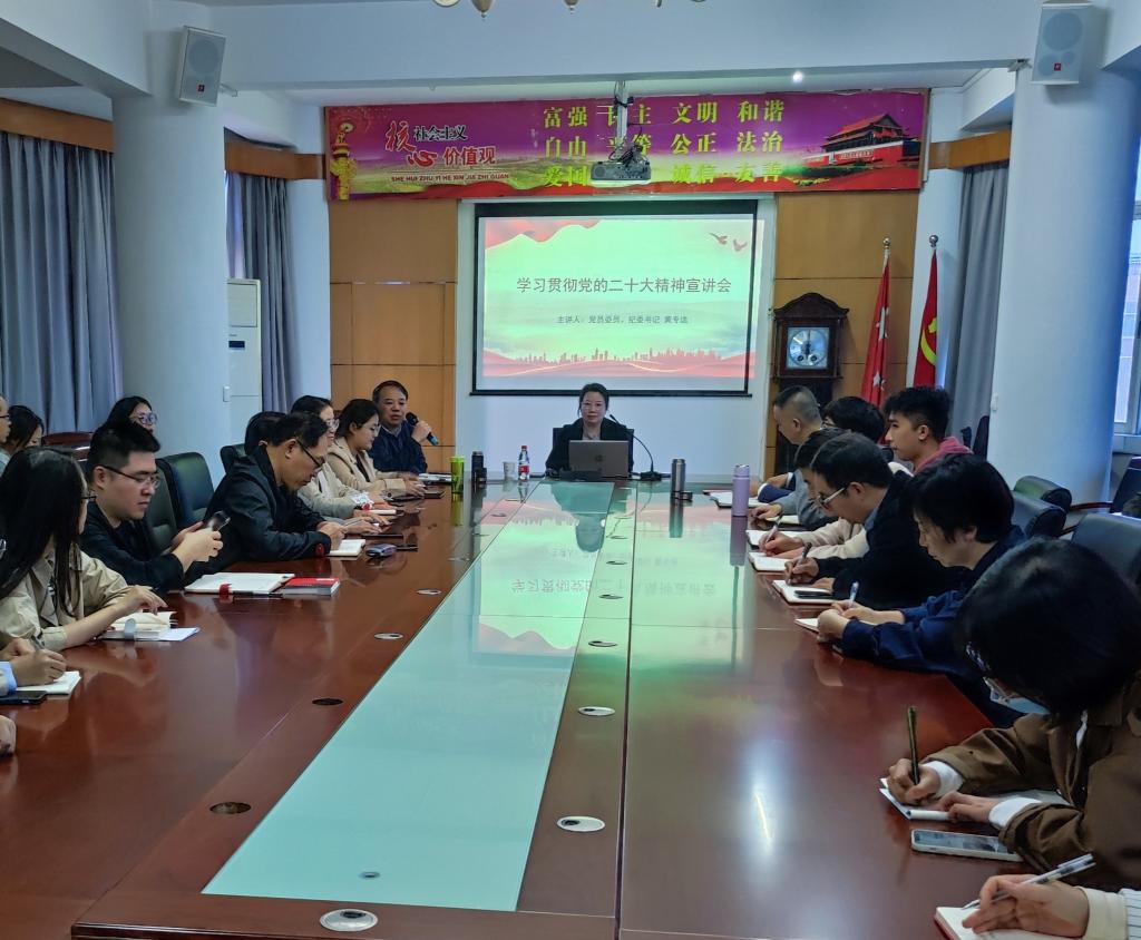 黄专途首先简要介绍了党的二十大召开的背景和意义,党的二十大是在全党全国各族人民迈上全面建设社会主义现代化国家新征程、向第二个百年奋斗目标进军的关键时刻召开的一次十分重要的大会,是一次高举旗帜、凝聚力量、团结奋进的大会。